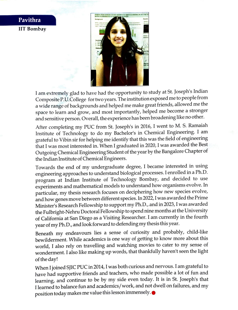 - Awarded the certificate of honour for doctor of philosophy in the field of chemistry on 11th January 2025 at Sir Puttanna Chetty Townhall Bangalore, presided by Archbishop Most Rev. Dr. Peter Machado. For dedication, intellectual, rigour and outstanding research that exemplifies academic excellence to inspire future generations.